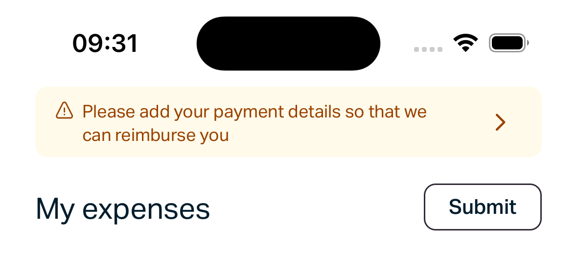 If you haven't entered your bank details, a banner will display to complete your payment details so you can get reimbursed.